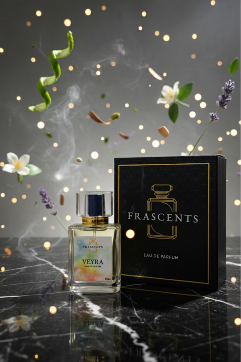 Confident, captivating, and refined — Veyra is a fragrance that makes a statement. Its sophisticated blend lingers effortlessly for 8 to 10 hours, making it your perfect companion from day to night. Presented in an elegant 50ml bottle, it’s the scent of modern luxury.